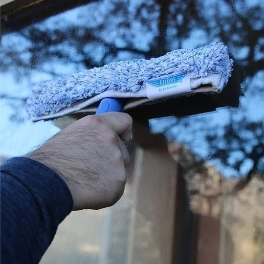 A luva azul torna simples e eficaz a remoção de sujeira da superfície.